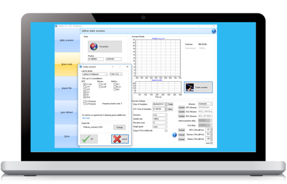 多卫星和多星座均可被模拟,用户还可精确控制速度、航向和高度配置文件。